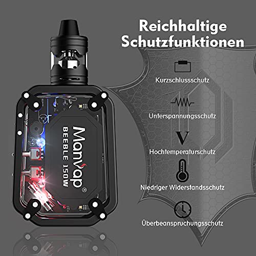 Manvap E Zigarette Starter Set 150W, Elektronische Zigaretten 0,4Ohm/2ml TF Verdampfer, E Shisha Smart Regenbogen LED…