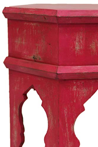 Größe: 50 cm hoch 45cm Durchmesser | Material: Massivholz vom Mangobaum | Farbe: Rot – Shabby Rot – | Form: Hexagonal | Dieser Blumentisch wird fertigmontiert geliefert.