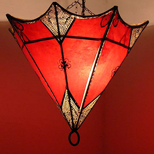 Orientalische Deckenlampe jeglicher Marokko. Die Marokkanische orientalische Deckenlampen Henna werden jeglicher Schmiedeeisen geformt, mit eingefärbtem Leder bespannt, in Handarbeit vernäht und mit Henna-Motiven kunstvoll bemalt.