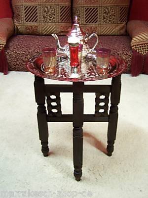 Ein Muss für sämtliche Tee- und Orientfans, damit Sie Ihren Tee orientalisch servieren können, bieten wir Ihnen hier traditionelles Original Marokkanische Teetisch.