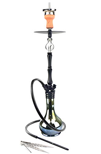 MATA LEON Leichtmetall Shisha 60cm charakteristisch im Komplettset. Das Set enthält einen massiven Molassefänger, Tonkopf inklusive Kaminaufsatz allesamt Edelstahl, eine Zange, einen Silikonschlauch mithilfe Leichtmetall Mundstück, ein teilbares Edelstahltauchrohr mithilfe Diffusor sowie einen 18/8er Schlauchanschluss mithilfe Anschlussstück