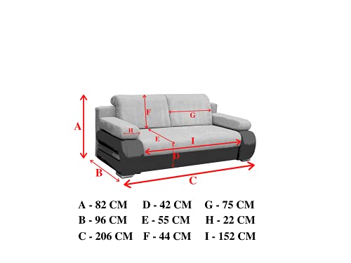 Länge: 96 cm, Breite: 206 cm, Höhe: 85 cm, Liegefläche: 196×140 cm