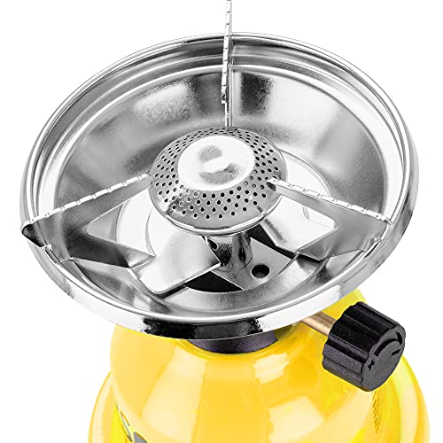 Gasverbrauch: 13 – 45 g/h sklavisch von der Leistungseinstellung am Aggregat. Leistung: 1,2 KW. Höhe: 19 cm. Farben: Gelb / Grün / Rot / Schwarz
