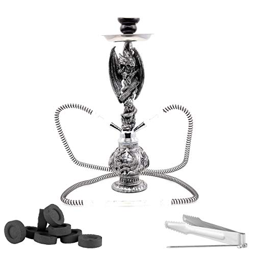 Stückzahl: 1 Set. 2 Schläuche inkl. Mundstücke / Metall Kohlenzange / Tabakkopf / Ascheteller / Glasbehälter / Rauchsäule / Dichtungen / inkl. 10 Fetzen Kohle. Länge Schläuche: Jeweils ca.1 m mit Kunststoff Mundstück. Höhe Shisha: 48 cm. Beschreibung: . Klassisch orientalische Wasserpfeife die Gesamtheit Glas und Metall in hochwertiger Qualität. Sinnvoll an Stelle Party, Familienfeiern, Restaurants, Bar usw. und im Freien. Farben: Ag | Schwarz
