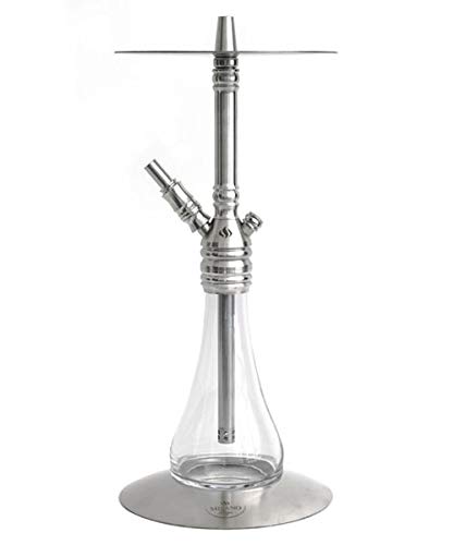 Die Milano Design Quality One transparente ShiSha setzt neue Optische Akzente, Sie ist eine mittelgroße ShiSha via Hochwertiger Edelstahlrauchsäule des Weiteren Standfuß.