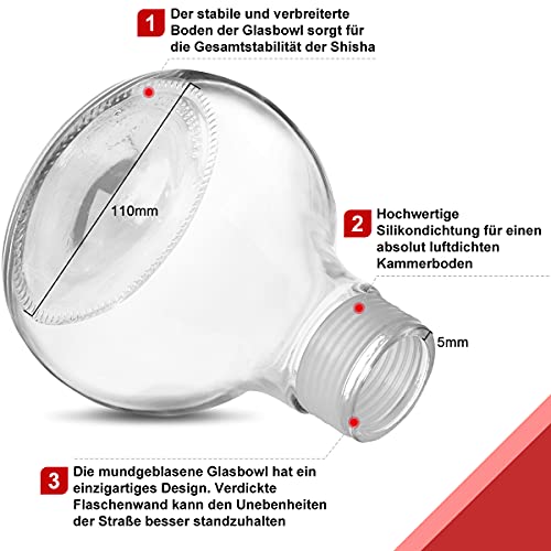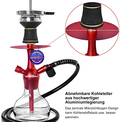 【Hochwertige Materialien】Das Shisha Set besteht aus eloxiertem Aluminium und wird mit einer nicht zerbrechlichen und kratzfesten Glasbowl geliefert. Der Glasboden ist sehr stabil. Sodass er für jede Transportmethode geeignet ist, und Sie müssen sich keine Gedanken über mögliche Probleme machen, die während des Transports auftreten können.