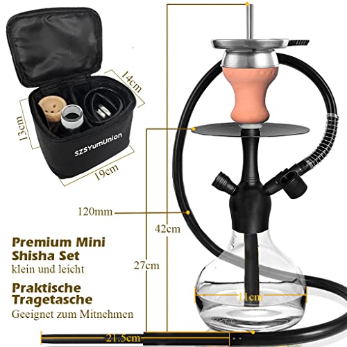 Mini Shisha Set SZSYumUnion Hookah to go Aluminium Kleine Wasserpfeife Komplett Set mit Zubehör und Tasche |Kaminaufsatz…