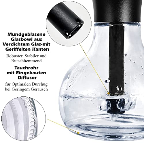 Gute Luftdichtheit & Ruhe: Mini Shisha Set hat ein gutes Dichtungssystem. Sie können den riesigen Shisha-Rauch genießen. Das Tauchrohr ist mit eine bessere Filter- und Kühlwirkung. Es reduziert Schaumeräusche und sorgt dafür, dass Sie beim Rauchen leise genießen können.