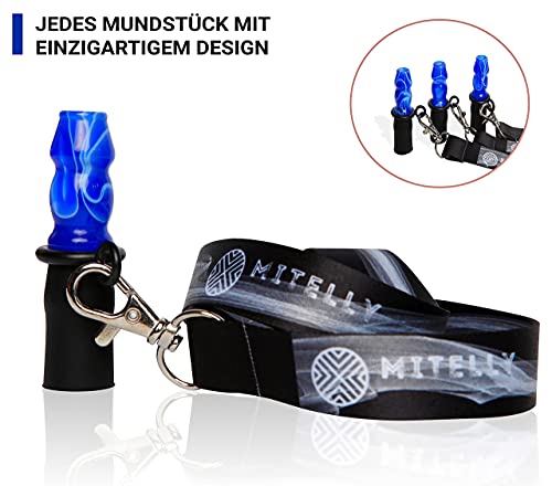 Das Mitelly Shisha Glaskopf Set ist das einzige am Marktgebiet mit einem passenden Schlüsselband dazu, damit du das Shishakopf Mundstück leicht überall mit annehmen kannst.
