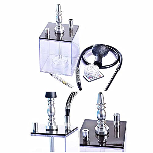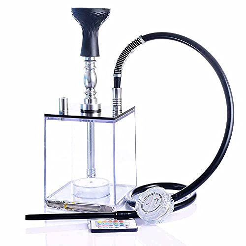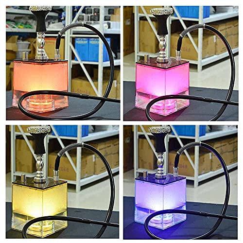 Modern Acrylic Square Tube Hookah Portable Led Light Hookah Set with Silicone Hookah Bowl + Hookah Hose + Charcoal…