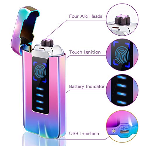?【Berührungssensor,LED-Anzeige】Berühren Sie die Zündung, Berühren Sie es einfach, um sich zu entzünden,Die Zündgeschwindigkeit ist fünfmal schneller als bei herkömmlichen feuerzeug usb aufladbar.Das elektro feuerzeug aufladbar ist mit einem hellen LED-Display ausgestattet.Dient zum Anzeigen der Fingerberührungsposition und der verbleibenden Batterieleistung, Jeder Balken repräsentiert 25% der Gesamtbatterie. Denken Sie daran, das plasma feuerzeug usb rechtzeitig aufzuladen.