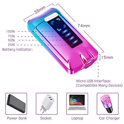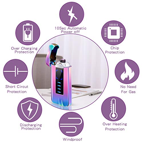 – Tragbares Lichtbogen Feuerzeug usb aufladbar. Wenn Sie die Sicherheitsabdeckung aufladen oder öffnen,leuchtet die Batterieanzeige auf