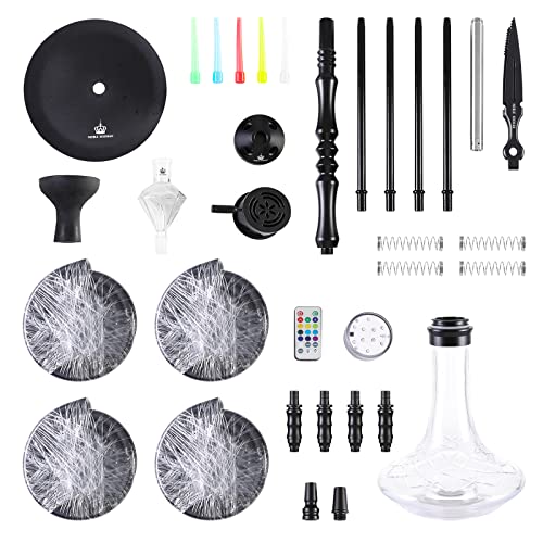NOBLE HOOKAH Shisha Set 4 Anschlüsse mit LED Licht Shisha Kopf XXL Shisha 4 Schlauch aus Aluminiumrohr mit Molassefänger…