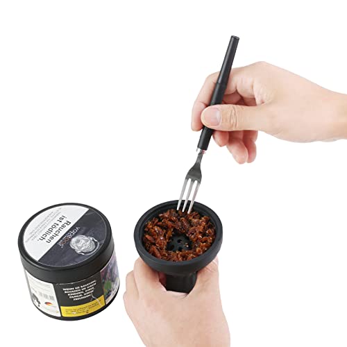 Sauber und praktisch: keine klebrigen Finger mehr, die Gabel erleichtert die Entnahme des Tabaks aus der Dose und die gleichmäßige Verteilung im Shisha-Kopf
