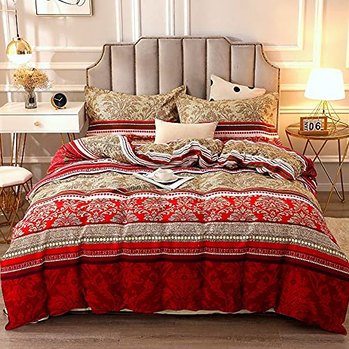 Omela Luxus Bohemian Bettwäsche mit Flair und Raffinesse, die perfekte Stimmabgabe für erstklassige Bettlösungen. Hauptsächlich in roter und goldener Farbe, Es ist mit luxuriös ethnisch indisches blumenmuster and elegant gestreift gemustert. Mode für Ihr Schlafzimmer, moderne, aktuelle Designs.