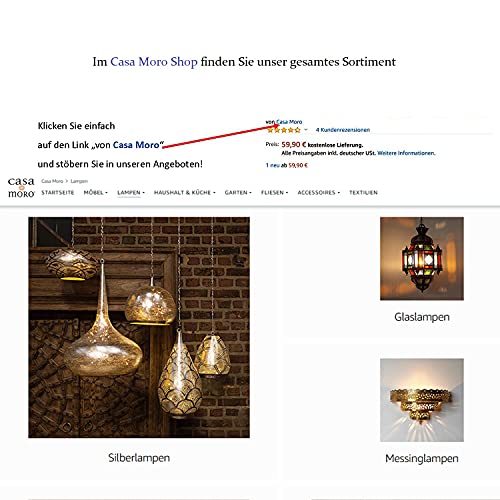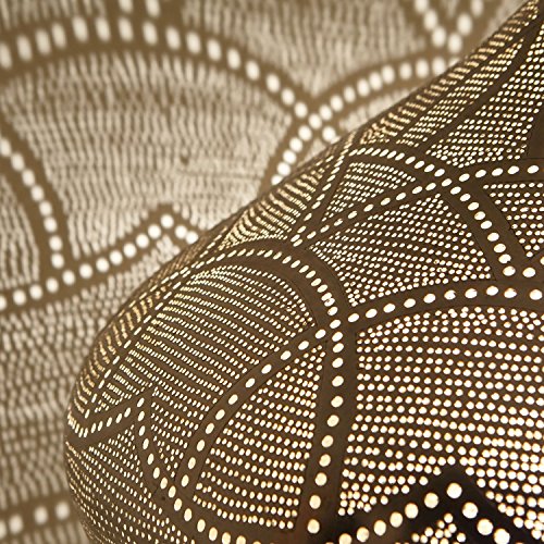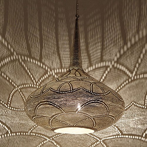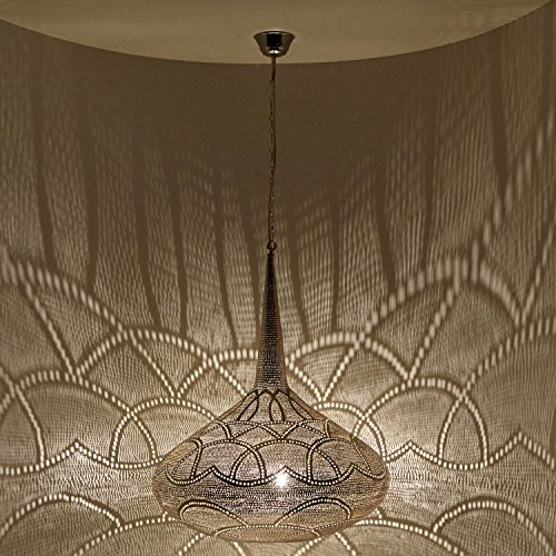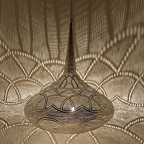 Die Hängellampe macht in nicht mehr da Ecke und in jedem Zimmer mit ihren verzaubernden Schattenwürfen eine gemütliche Stimmung! Ob über dem Esstisch , im Schlaf-oder Wohnzimmer, ob mediterran, orientalisch oder nunmehrig- mit unserer versilberten Ägyptischen Lampe begeben Sie sich auf eine Reise in den Orient und lassen sich verzaubern mit filigranen Schatten – ein Hingucker der in ihrem Wohnbereich nicht fehlen darf!