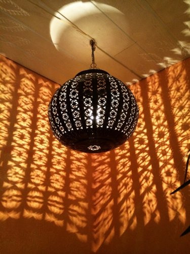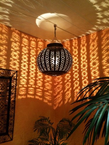 Die Form dieser Deckenleuchte ist orientalisch arabisch, die Perforation ist marokkanisch indisch, diese Orientlampe passt hervorragend als Dekoration für kreative Deko Ideen, für eine romantische Beleuchtung im Schlafzimmer, Esstischlampe im Esszimmer, als Pendellampe in der Küche, Hängelampe im Büro, Nachtlicht im Flur, oder als Geschenk.