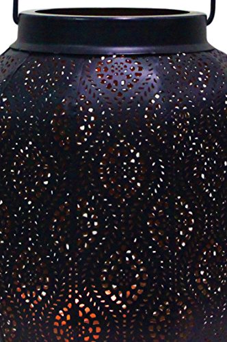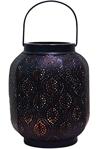 Marokkanisches Gartenwindlicht hängend oder zum Hinstellen, Schwarz von außen und kupferfarben von innen, Schillerndes Design fängt das Kerzenlicht auf und reflektiert es für einen wunderschönen Effekt, Die Perforationen zaubern orientalische Schattenspiele in ihren All.