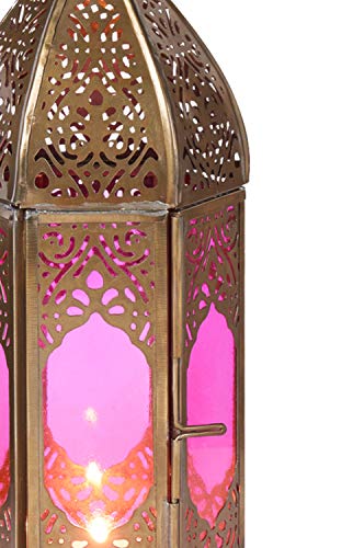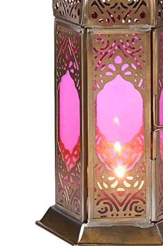 Orient Metalllaterne Messing Antiquarisch von außen, Schillerndes Design fängt das Kerzenlicht auf und reflektiert es anstelle einen wunderschönen Effekt, Die Perforationen zaubern orientalische Schattenspiele in ihren Kosmos.