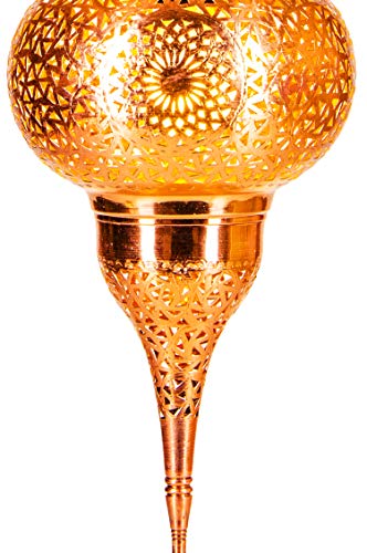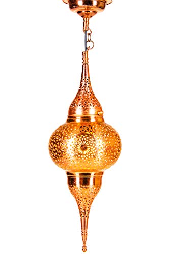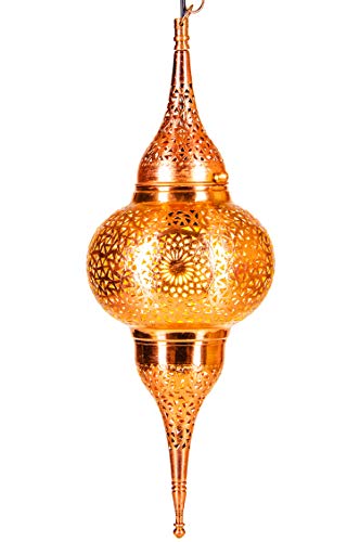 Arabische Deckenlampe 100% Handarbeit aus Marokko, Lampenschirm ist aus Messing goldfarben von außen und von innen in Tropfenform, Schillerndes Design fängt das Licht auf und reflektiert es für einen wunderschönen Effekt, Die Perforationen zaubern orientalische Schattenspiele in ihren Raum | Schillerndes, warmes, beruhigendes, sanftes und romantisches Licht für eine entspannte und romantische Atmosphäre.