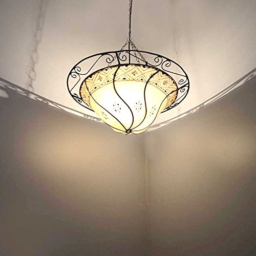 Eigenschaften: 50 x 40 cm (D x H) | Farbe: Weiß | Material: Echtem Leder/Metall/Henna | Stil: Orientalisch, Marokkanisch, Asiatisch, Aktuell, Barock, Antik | Orientalische Pendelleuchte Indoor | Leuchtmittel bzw. LED ist nicht im Lieferumfang enthalten.
