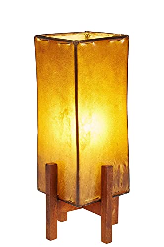 Größe: 39cm hoch, 16,5cm Zutiefst und 16,5cm betrunken | Material: Metall & Ziegenleder | Farbe: Braun | Holz Gestell: Mangoholz Dunkelbraun | Anzahl: 1 Lampe | Diese arabische Leuchte hat eine Leuchtquelle, Die Elektrik ist in der EU hergestellt, fertig montiert mit einer E14 Beule bis max. 40 Watt, 2m Kabel, Schalter und Stecker | Leuchtmittel ist nicht im Lieferumfang enthalten.