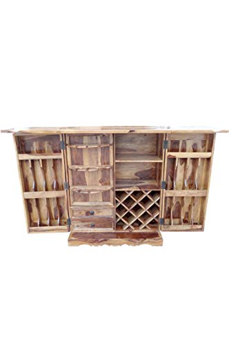 Die Verzierung dieser Kellerbar ist indisch marokkanisch. Und stehen für Natürlichkeit und Individualität, Indische Möbel passen hervorragend als authentische Dekoration Ihre Wohnung für kreative marokkanische Deko Ideen Ihre Inneneinrichtung, aufgeklappt finden Sie einen kleinen Weinregal für Weinflaschen, Viele Halter für Weingläser, Ablagen für Gläser, Bier oder Whiskey-Flaschen, zwei Schublade für Flaschenöffner und Besteck.