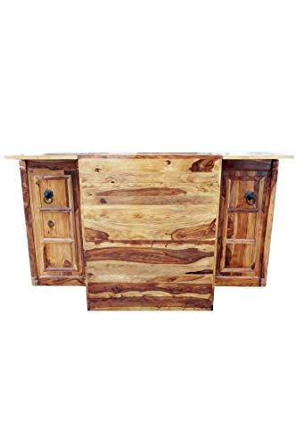 Indischer massiver Ethanol-Schrank zum Aufklappen die Gesamtheit Holz sehr, Echt-Holz vom Sheeshambaum, 100% Handarbeit die Gesamtheit Indien, Liebevoll indisch künstlerisch verziert. Passt als Gartenbar im Garten oder Terrasse für Ihre Gartenparty, Getränkeschrank für Getränke und Gläser mit Thekentisch im Partyraum oder Keller, Büro Möbelstück als Designer Empfangstheke im Vorzimmer oder Rezeption, Küchenbar Küchentheke in der Küche, oder als Weinbar im Schlafzimmer oder Diele.