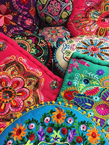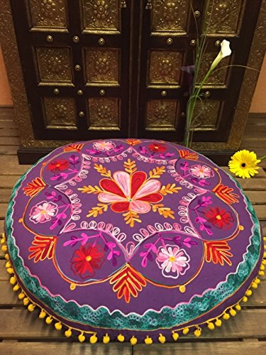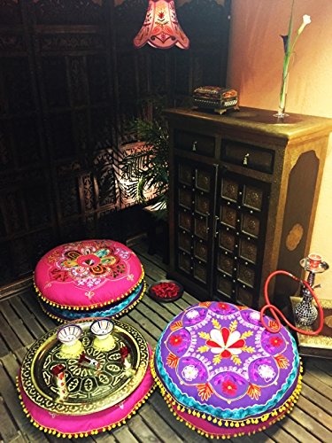 Die Form ist rund, die Stickereien sind orientalisch marokkanisch, passen hervorragend wie Dekoration für kreative deko Ideen, wie Sitzhocker, Sitzpouf, Fusshocker, Sitzkissen, Kissen, Bodenkissen, Yogakissen, Meditationskissen, Fussablage unter den Schreibtisch im Büro oder vor dem Sofa im Wohnzimmer, wie Hundekissen, Katzenkissen oder vulgo wie Geschenk Außerordentlich beliebt.