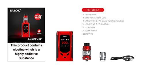 Original Smok R Kiss Kit E Zigarette 200W mit TFV Mini V2 Tank 2ml Kein Nikotin kein Rauchöl (Black Red)