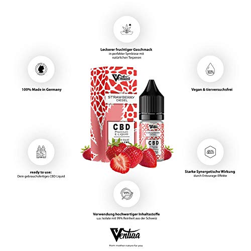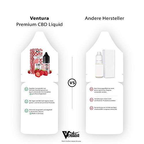 ✅ DEIN VENTURA CBD VAPE LIQUID! Erlebe Wirksamkeit und Geschmack mit deinem neuen nikotinfreien Ventura CBD Liquid! MADE in GERMANY mit Liebe zum Detail in unseren deutschen Laboren. Dein Liquid für E Zigaretten und E Shishas mit unterschiedlichem CBD Einkommen. Hohe Kompatibilität mit vielen Verdampfern!