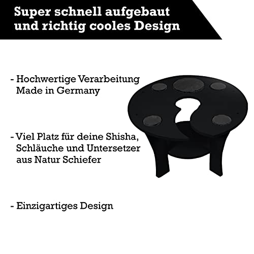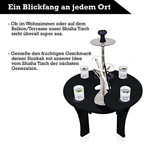 Begeistere dich und deine Freunde mit dem Premium Shisha Tisch mit EXTRA Loch Einführung , und Ablegen sodass jede Shisha Größe problemlos passt.