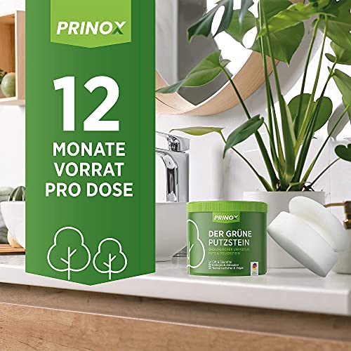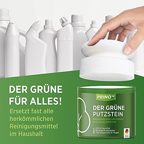 ? JAHRESVORRAT PRO DOSE – Aufgrund seiner festen Konsistenz ist Der Grüne Putzstein von Prinox extrem ergiebig und hält bei regelmäßigem Gebrauch für den gesamten Haushalt mindestens 1 ganzes Jahr. Dabei sparen Sie sich fast alle anderen herkömmlichen Reinigungsmittel.