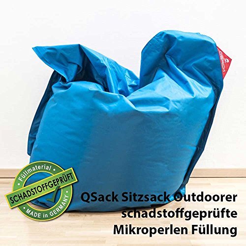 QSack Sitzsack Outdoorer mit Toxproof Mikroperlen EPS schadstoffgeprüft und Sitzsack Innenhülle, 140 x 180 cm (blau)