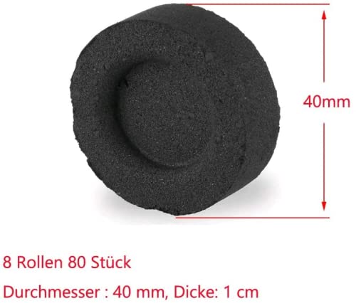 ✔ Die Selbstentzündungskohle hat eine Kreisform,Schattierung: Durchmesser : 4 cm, Dicke: 1 cm;Material: Kohlenstoff + Kleber + Verbrennstoff