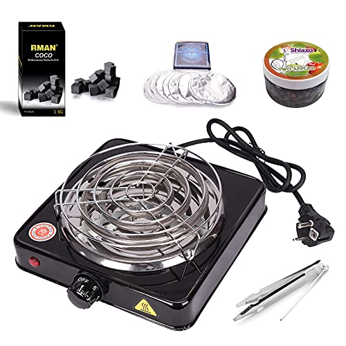 RMAN® Shisha Zubehör Set – Shisha Kohleanzünder Elektrisch, Shisha Kohle, Shisha Tabak, Alufolie und Zange
