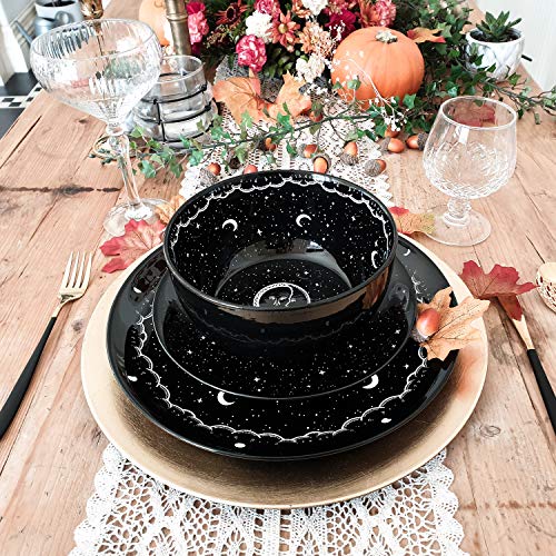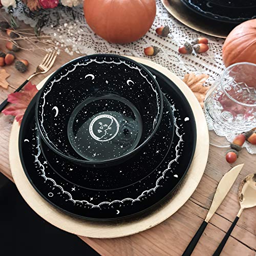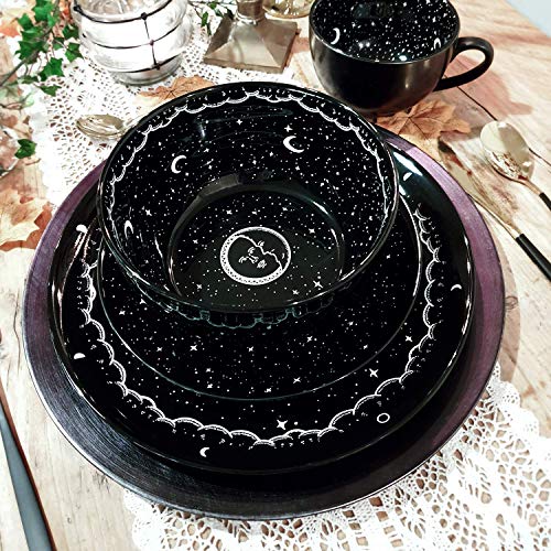 ☠Stil & Vielseitigkeit: Schwarzes Geschirr mit Hexendekor verleiht Ihren Tellern und Schüsseln und Küchentischdekorationen Magie. Echte Wohnungsutensilien für die erste Wohnung, wenn Sie eine gruselige Dekoration in Ihrem neuen Zuhause bauen wollen. Verwenden Sie als Servierschalen für Ihre Speiseteller, als große Müslischalen zum Frühstück oder für alltägliche Mahlzeiten. SchÃn genug, um Ihre heilenden Kristalle, Hexereibedarf und ästhetischen Accessoires zu abbilden. Perfek