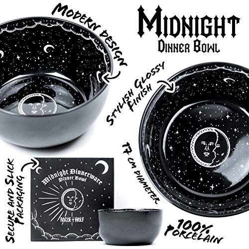 Design: SchÃne Küchenutensilien, große schwarze Porzellanschale verziert mit Sonne, Mond, Sternen und Wolken. Sieht atemberaubend aus mit Ihrem gotischen Haushaltsgeschirr-Set, Geschirrsets, schwarzen Tellern und Geschirrset und ergänzt Ihre Hexen-Küchendekoration. Ideal für intime Mahlzeiten und Dinnerpartys. Verwenden Sie es als Salatschüssel oder als Suppenschalen und Pastaschalen, um Ihrem Tisch ein wenig Hokus-Pokus-Dekor hinzuzufügen. Unsere Schalen sind perfekt für Hexen, die Got