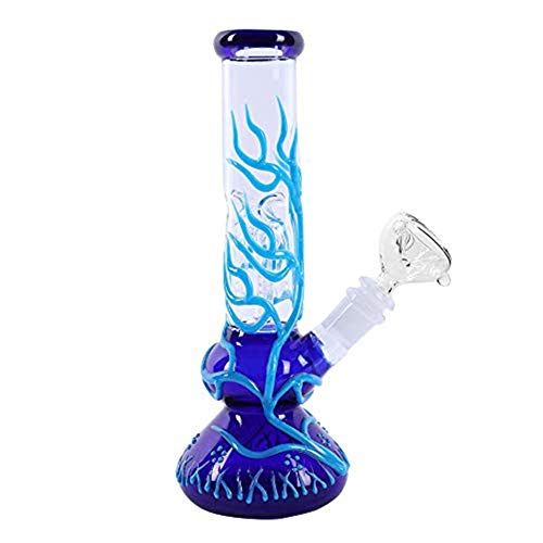 RORA Fluorescent Glass Hookah Bongs 14.5mm Joint Smoking Pipe Amazing Handmade Pipe Gift with Color Change (Blue)