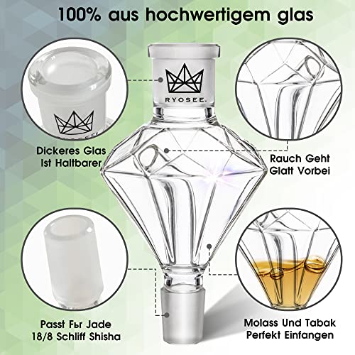 Ryosee Shisha Molasses Catcher Transparent 18/8 Cut Precooler Attachment Made of Thickened Glass
