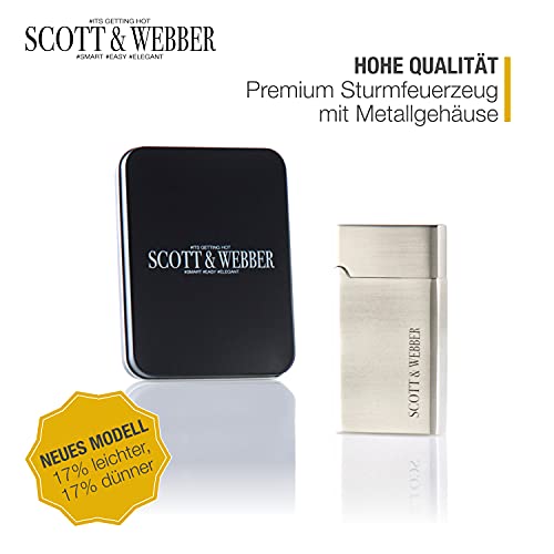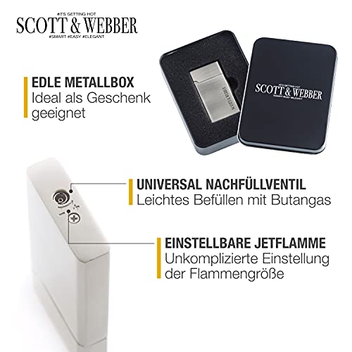 Scott & Webber® – Sturmfeuerzeug mit Jetflamme – Nachfüllbares Feuerzeug aus Metall einstellbar bis 1300°C – Inkl. edler…