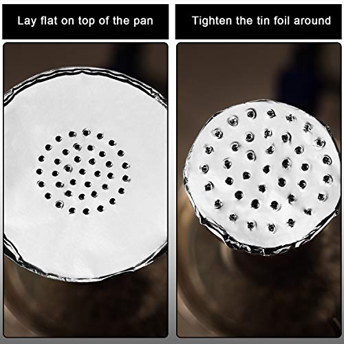 Einfach zu bedienen: Die vorgestanzte Folie ist gebrauchsfertig. Sie müssen sie nicht selbst stanzen. Decken Sie sie einfach auf die Shisha Schüssel und legen Sie die Holzkohle auf. Dies spart Zeit und Mühe bei der Zubereitung der Wasserpfeife
