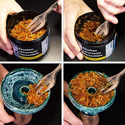 PRAKTISCH – Mithilfe der Shisha Gabel kannst du deinen Shisha Tabak optimal portionieren und massenweise einfacher verteilen und andrücken denn mit der Shisha Zange und so schneller und leichter den perfekten Shisha Kopf bauen.