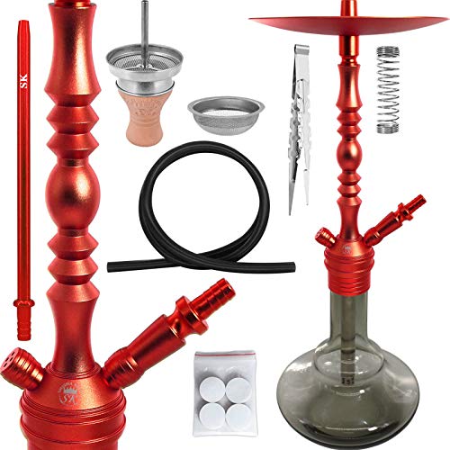 Shisha King® SKS Magnoon Shisha Set Hookah 56 cm Alu + Zubehör | EIN Anschluss Wasserpfeife Komplett Schlauch Kopf…