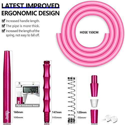 Shisha Schlauch Pink mit Mundstück Schlauchadapter (M16 Gewinde) Schliff Endstück Schlauchfeder Dichtung, Schlauchset…