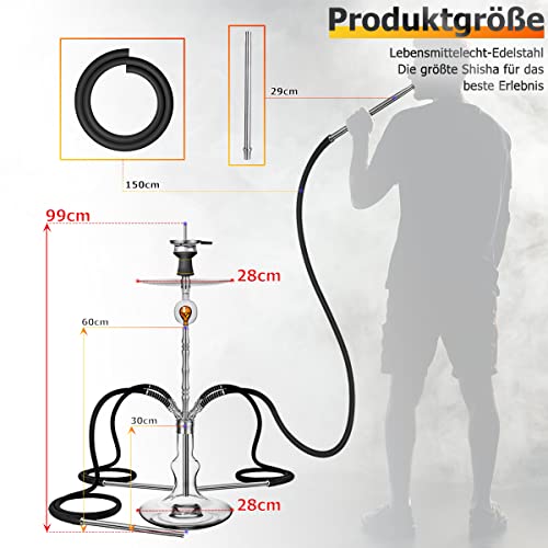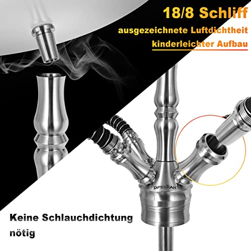 【4 Anschlüsse Abseitsposition großer Shisha Set】Das DFESKAH Edelstahl-Shisha-Set enthält Edelstahl-alkalische Lösung mit 4 Anschlüssen. Mit den mitgelieferten 4 Schlauchadaptern und 4 Schläuchen