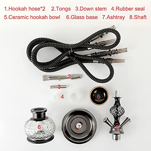 【Komplettes Wasserpfeifen-Set】Dieses Wasserpfeifen-Set enthält alles, was Sie brauchen, einschließlich einer dicken Glasvase, einem Schaft (mit einem Aschenbecher), einer Keramikschale, 2 Schläuchen und einer Shisha-Kohlezange.