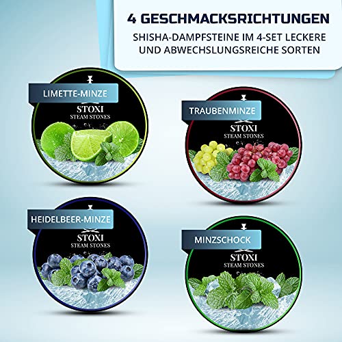 Shisha Tabak Ersatz [4 Stück Minzig Fruchtig] Dampfsteine Nikotinfrei MADE IN GERMANY Geiler Geschmack + Krasse…
