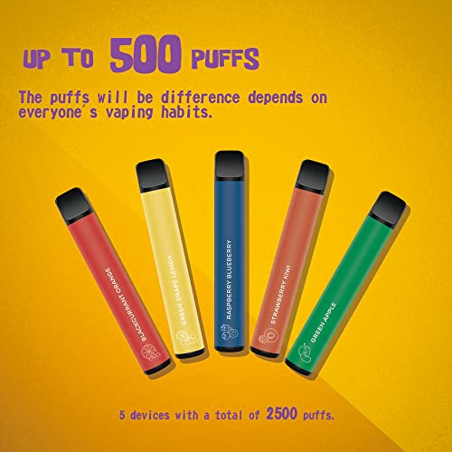 【REICHES FRUCHTIGES AROMA】 – Die Kombinationspackungen mit fünf Einweg Vape Stick: Schwarze Johannisbeere Orange, Grüne Traube Zitrone, Himbeere Blaubeere, Erdbeere Kiwi, Grüner Apfel, der erfrischende und leckere Geschmack, der Ihre ideale Wahl für das tägliche Verdampfen sein muss