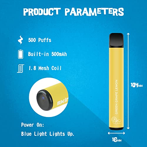 【EINWEG E ZIGARETTE】 – SKIRA Einweg Vape ist mit E-Liquid vorgefüllt und kann direkt inhaliert werden, entsorgen, wenn das Antrieb obsolet ist, einfach zu bedienen. Eingebauter 500-mAh-Stromspeicher, jedes Antrieb kann etwa 500 Züge versorgen, um Ihren täglichen Dampfbedarf zu decken